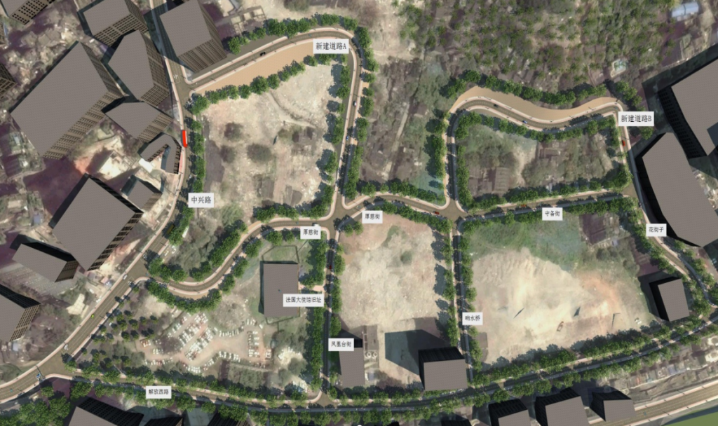 项目规模:十八梯片区道路等相关配套设施建设工程EPC项目共包含11条城市道路,总长约为3.1km。其中地面道路7条,分别为厚慈街、凤凰台街、响水桥、守备街、花街子、新建道路A、新建道路B,总长约1.6km;地下道路4条,分别为解放碑地下车库出口连接道、解放碑地下车库入口连接道、长滨路连接道、十八梯地下车库环道,总长约为1.5km。